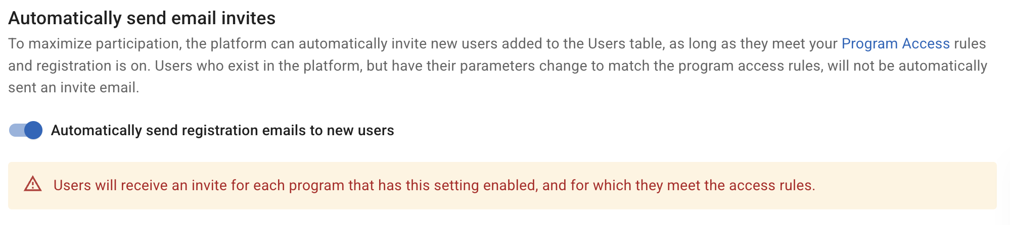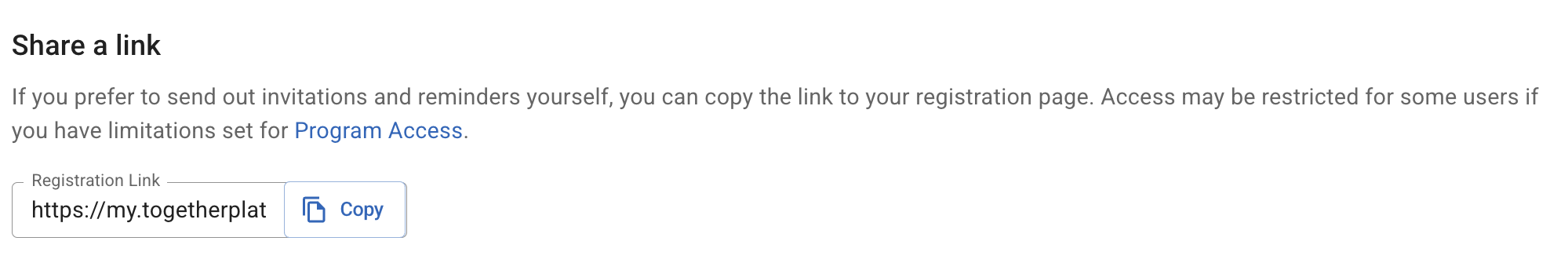 This unique registration link can be copied for you to announce your program using alternative methods besides registering from the emails sent out via the platform. You can announce your program on your company chat, link it on your intranet, or add it to your program landing page. It allows for more flexibility in providing access to our platform.Â