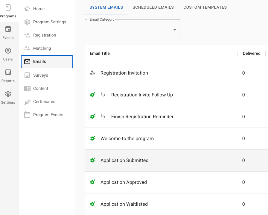 By default, programs are created with applications turned off. This means users who register are immediately granted access to program content and matching after completing the registration questionnaire.